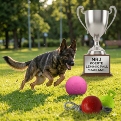 👉 Miinus: mõni koer närib käepideme ära, aga pall ise kestab edasi
