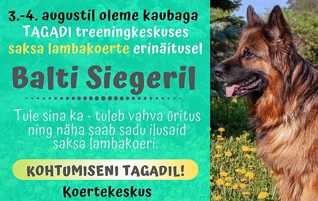 Taaskord sportlik nädalavahetus tulekul. Seekord oleme Tagadi treeningkeskuses saksa lambakoerte erinäitusel Balti Sieger. Kaasas igasugu [...]