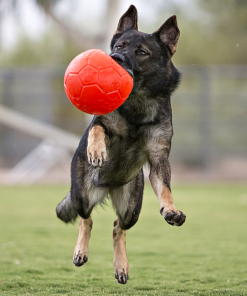 See Jolly jalgpall sobib igas suuruses koertele. Pall on valmistatud vastupidavast, kuid paindlikust JollyFlex™ materialist, mistõttu saab koer seda (läbi)hammustada, kuid pall võtab ikkagi uuesti oma ümmarguse kuju ja mäng saab jätkuda. Palliga saab mängida ka vees, sest see ei upu. M-suuruses pall sobib koertele kaaluga alla 40 kg.