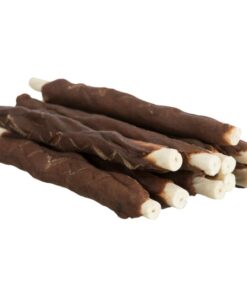 Trixie Rabbit Chewing Rolls on maitsvad koerte närimisvahendid, mis on valmistatud küülikulihaga kaetud veisenahast. Eriti paksud nahakihid on gluteenivabad ega sisalda lisatud suhkrut, nii et su neljajalgne sõber saab närimist nautida kaua.