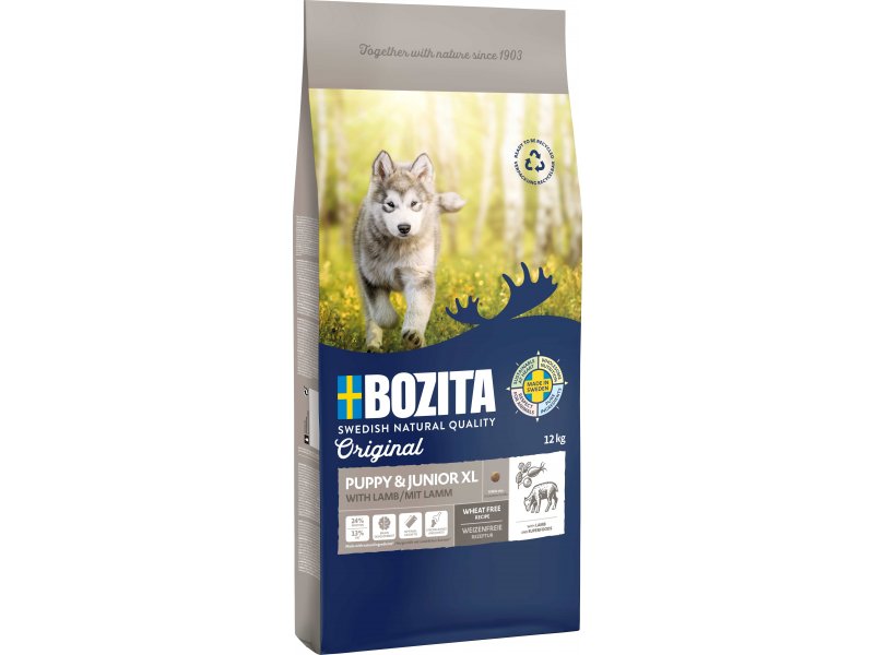 Bozita Puppy Junior nisuvaba koerasööt on täissööt kutsikatele, noortele koertele, tiinetele ja imetavatele koertele. Bozita Puppy Junior nisuvabal koerasöödal on hästi tasakaalustatud toiteaineline koostis, mis valmistatud värskest kanalihast, lisatud juurde FOS, omega 3, omega 6, kibuvitsa antioksüdante, kuivatatud mustikad ja kuivatatud pohlad.