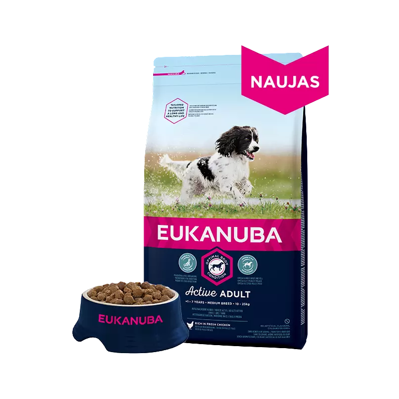 Eukanuba eksklusiivne täiskasvanutele mõeldud toit on spetsiaalselt koostatud optimaalse füüsilise vormi säilitamiseks, lihasmassi säilitamiseks ja energiatasakaalu säilitamiseks. Sobib keskmist tõugu koertele vanuses 1 kuni 7 aastat.