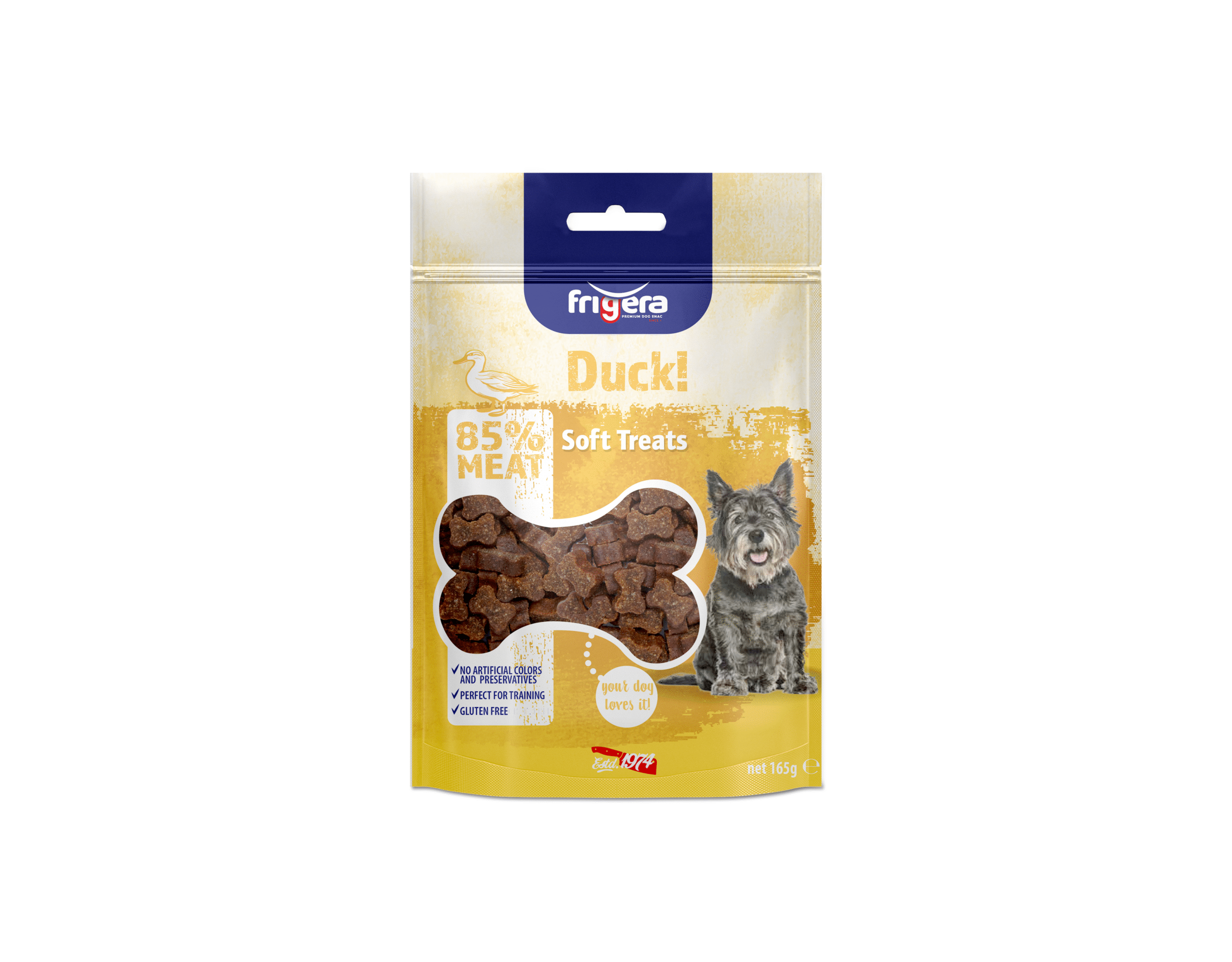 Frigera poolniiskete maiuste sarja tõelised tipp-tooted! Gluteenivabad ja ülikõrge lihasisaldusega – lausa 85%! Isegi kõige tundlikumad koerad ei suuda neile vastu panna. Valmistatud ainult parimatest saadaval olevatest koostisosadest, ilma säilitusainete ja kunstlike värvaineteta – tegemist on ühtede kõige tervislikumate maiustega turul.
