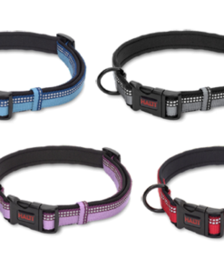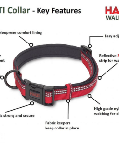 Halti kaelarihm on tehtud kahest materjalist: tugevast välimisest rihmast ja pehmest, kuid vastupidavast neopreenist voodrist, mis teeb selle koera jaoks mugavaks. Halti kaelarihm on lihtne ja praktiline. Selle pikkust saab reguleerida ning selle kinnitus on tugev ja turvaline. Rihma külge saab kinnitada kapsli või sildi koera omaniku andmetega. Rihmal on 3M ™ Scotchlite ™ helkurriba, mis teeb koera hämaras nähtavamaks.