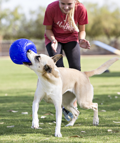 See Jolly jalgpall sobib igas suuruses koertele. Pall on valmistatud vastupidavast, kuid paindlikust JollyFlex™ materialist, mistõttu saab koer seda (läbi)hammustada, kuid pall võtab ikkagi uuesti oma ümmarguse kuju ja mäng saab jätkuda. Palliga saab mängida ka vees, sest see ei upu. Roheline pall on õunanätsu lõhnaga! M-suuruses pall sobib koertele kaaluga alla 40 kg. .