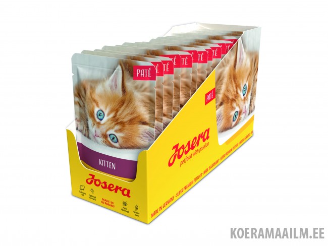 Josera pasteet kassipoegadele lõheõliga. Täisväärtuslik sööt kuni 12 kuu vanustele noortele kassidele. Kassidel on omad ideed ja nad on tõelised gurmaanid. Nad teavad juba kassipoegadena täpselt, mis neile meeldib. 70% kanaliha sisaldav Josera pasteet kassipoegadele hoolitseb teie kassi eest “maitsekalt”, pakkudes talle tasakaalustatud toitained tervislikuks kasvuks.