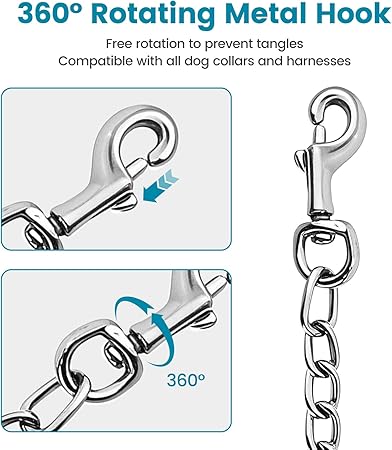 Lihtne kinnitada: meie käepidemega koerakaelarihm on varustatud tugevate klambritega, on suure tõmbetugevusega ja seda saab paindlikult kinnitada iga koerakaelarihma või rakmete külge, on lihtne kasutada. Pikkus on 120 cm, lüli paksus 3mm ja sobib väikestele ja keskmistele koertele.