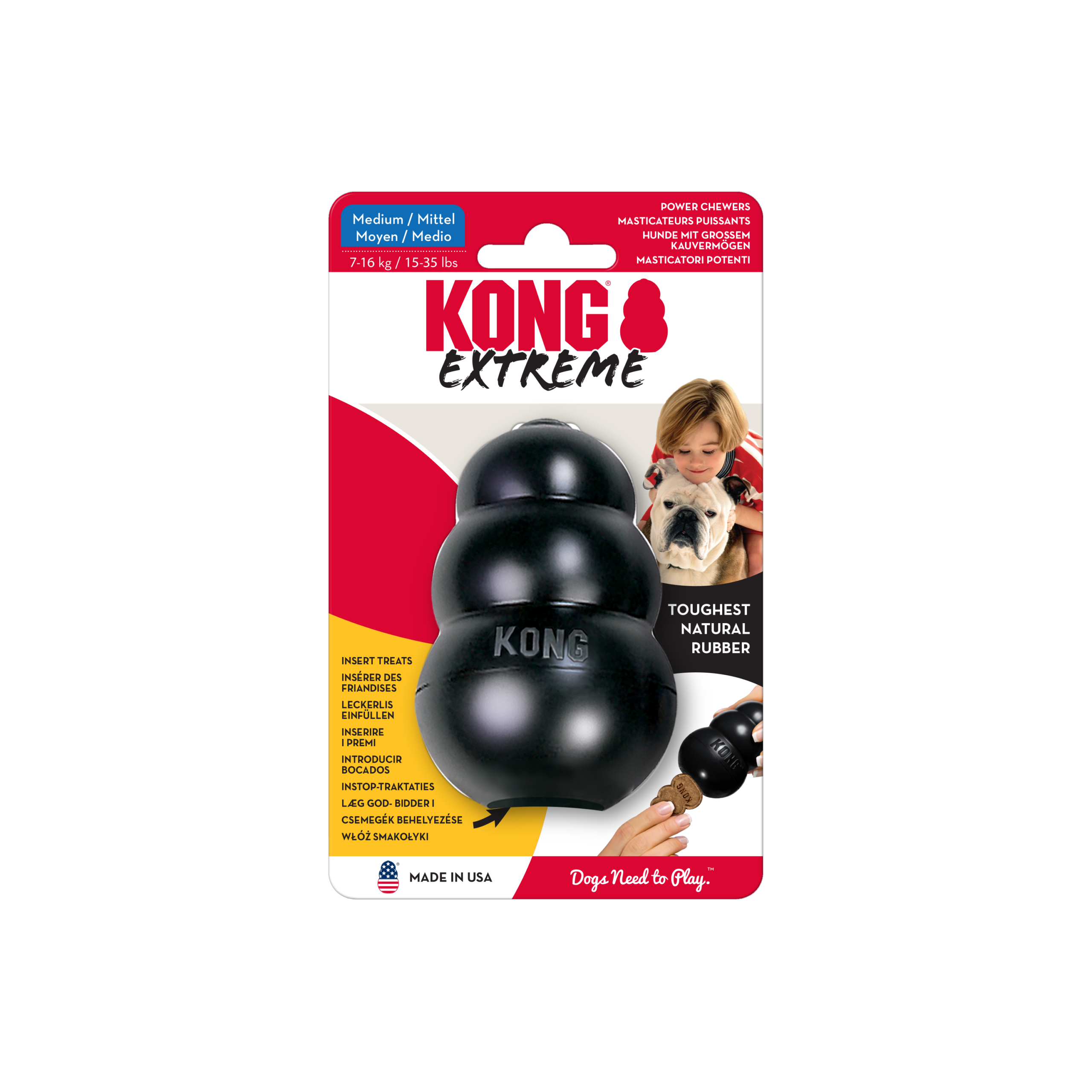 KONG Extreme on KONGi mänguasjadest kõige tugevamast ja vastupidavamast kummist. See on disainitud ja sobib just eriti suurtele närijatele. Suurus XS sobib koertele kaaluga kuni 2 kg.