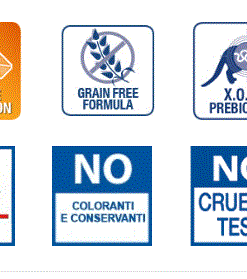 Koostis: Hüdrolüüsitud lõheproteiin (19%), tapiokk, kartul, loomne rasv (kanaõli)*, kanaliha, hernekiud, loomne rasv (rasv)*, kuivatatud porgand, kalaõli (lõheõli)*, mineraalsoolad, ksülo-oligosahhariidid (XOS 0,4%), Yucca schidigera, kuivatatud jõhvikas (0,05%), värskete puu- ja köögiviljade töötlemise tooted ja kõrvalsaadused (melonimahla kontsentraat – Cucumis melo cantalupensis – superoksiidi dismutaasi allikas – 0,005%), piimavalgu pulber . *99,6% puhastatud ja konserveeritud looduslike antioksüdantidega.
