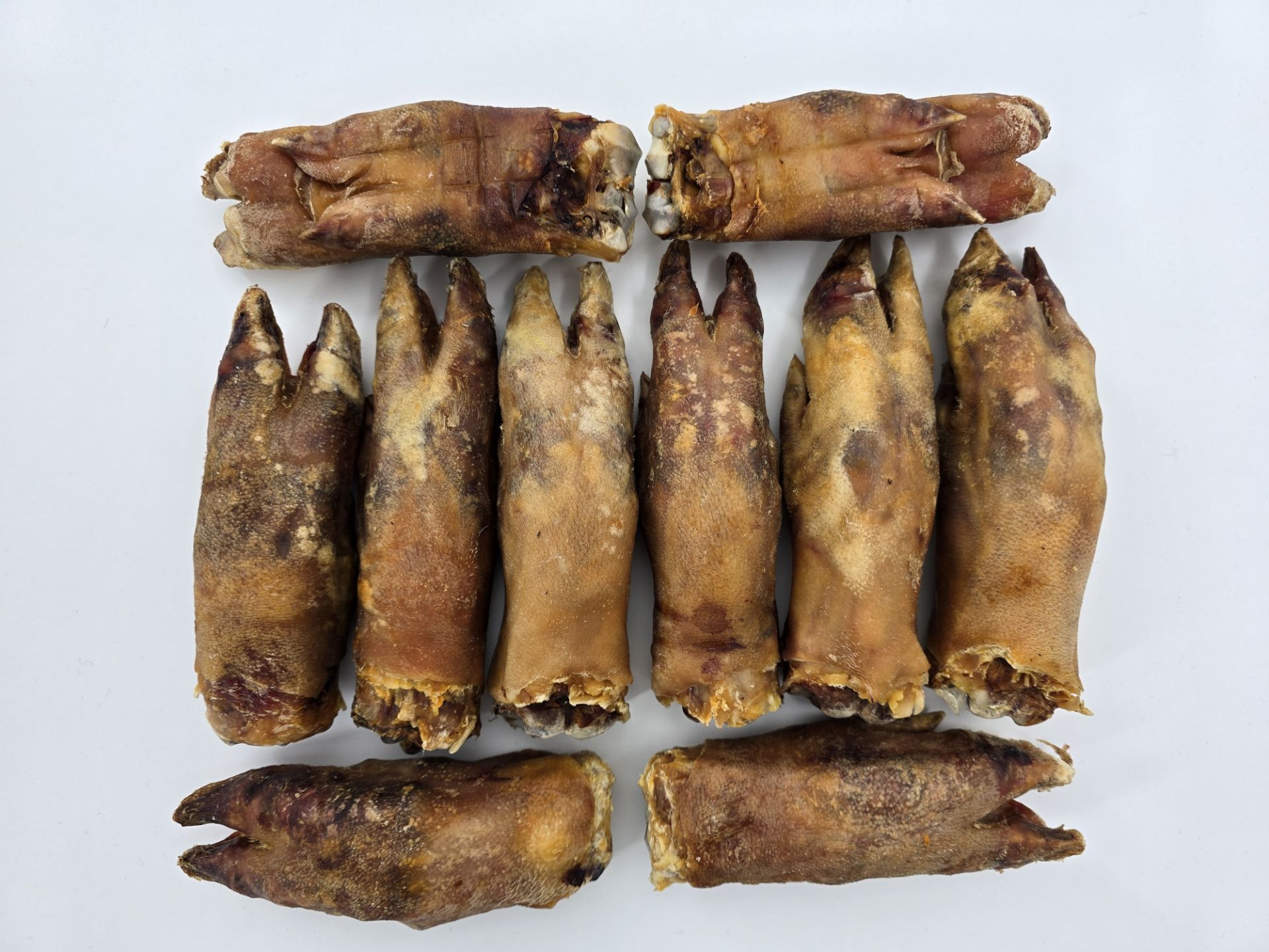 Ei sisalda säilitusaineid ega värvaineid. Kuivatatud seajalad aitavad koertel vältida parodontiidi – need eemaldavad hambakivi ja masseerivad igemeid, mis on teie koerale tõeline nauding, samal ajal puhastades ja tugevdades tema hambaid. Seda maiust saab kasutada ka hea käitumise eest preemiana või käskude ja trikkide õpetamise vahendina. Koerale maiuseid andes loote temaga lähedase sideme, näidates, et ta on teile oluline ja et hindate tema pingutusi.