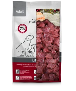 Täiskasvanud koertele mõeldud PLATINUM Adult Lamb sobib tänu oma naturaalsele, tervislikule ja kergesti seeditavale koostisele kõigile koertele, olenemata vanusest või tõust. PLATINUM Adult Lamb on välja töötatud spetsiaalselt toitumise parandamiseks ning ei sisalda lisaaineid, mis võiksid koerale kahjulikud olla. Toit sisaldab olulisi vitamiine tervise ja energia tagamiseks ning väärtuslikud ürdid soodustavad ainevahetust.