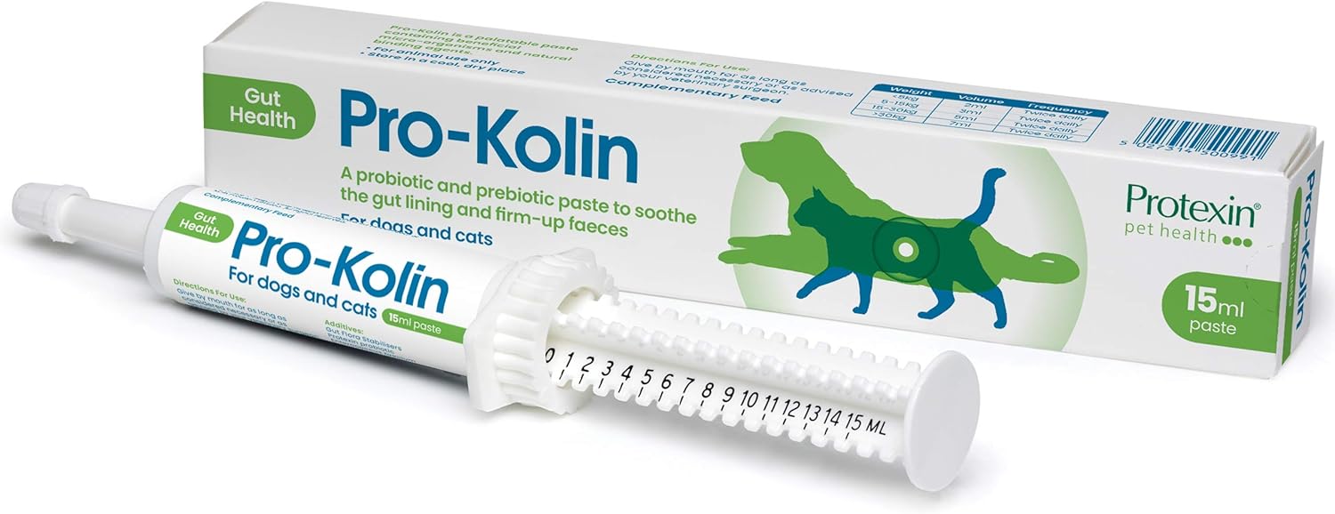 Pro-Kolin pasta koertele ja kassidele seedimise toetamiseks. Täiendsööt, mis sisaldab vajalikke mikroorganisme, mida leidub ka normaalses soole mikroflooras ning kaoliini ja pektiini, mis kaitsevad soolestikku. Lisatud on prebiootikume, mis on soolestiku kasulike bakterite toiduallikaks.