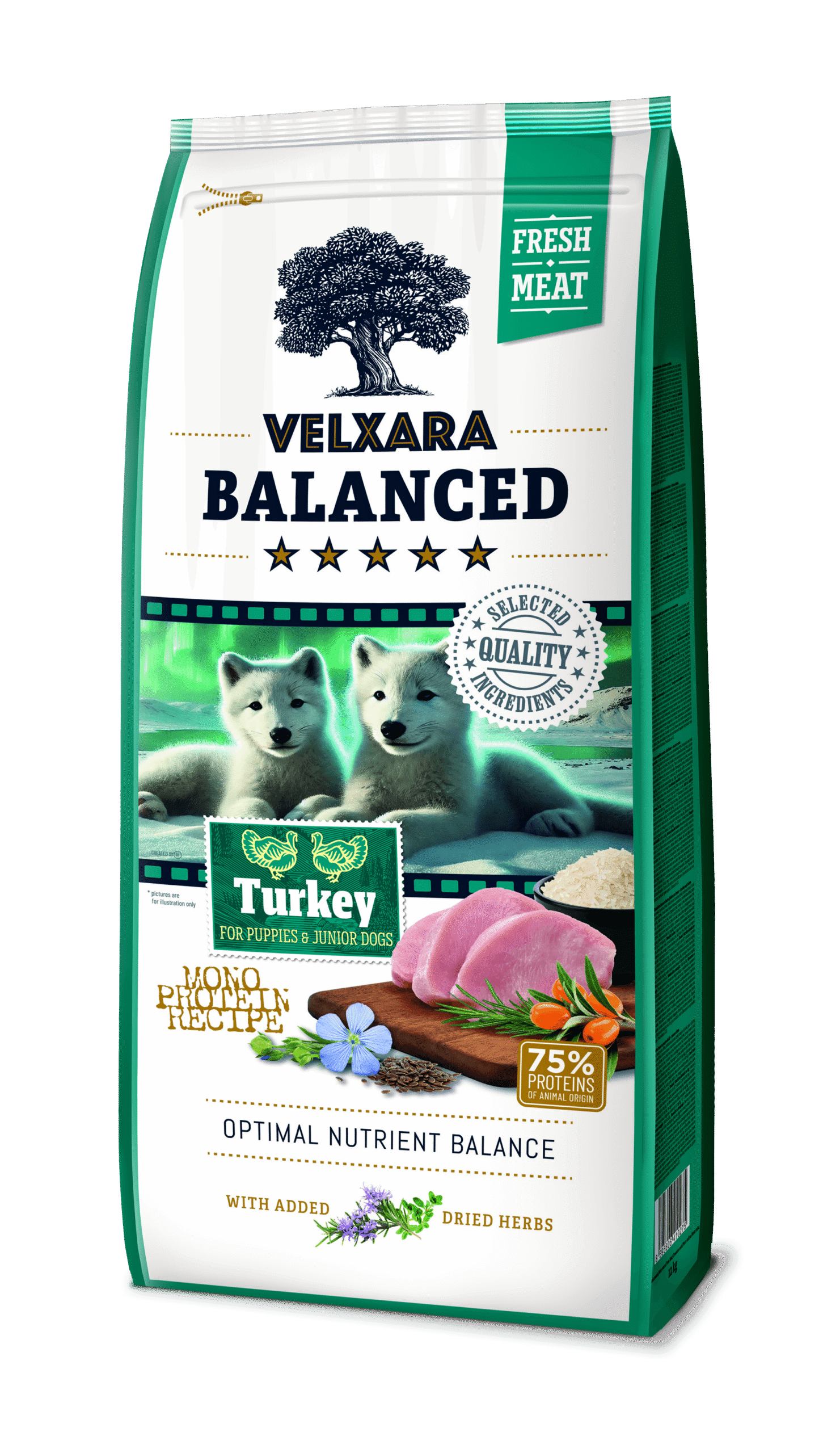 Velxara super premium monoproteiine täissööt kutsikatele värske kalkunilihaliha ja purustatud riisiga.Sobib tundlikele koertele, allergiate ja toidutundlikkuse korral, võimalike allergiatekitajate välistamiseksGluteenivaba ühe proteiiniga koostis (monoproteiin).Kalkuniliha on valgurikas ,sisaldades kõiki asendamatuid aminohappeid mida kutsikas kasvuks vajabSisaldab 75% loomseid koostisosi-värsket ja veetustatud kalkuniliha,purustatud riisi ,supertoidusegu ja ürte.Ei sisalda kanajahu,sojat,nisu,maisi.Ilma kunstlike säilitus,- värvainetete ja maitsetugevdajateta.Tänu spetsiaalselt kohandatud graanuli suurusele on Velxara ideaalne väiksematele ja suurematele tõugudele