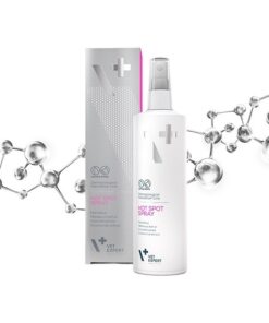 Vetexpert Hot Spot Spray nanohõbeda, teepuuõli, aaloe leheekstrakti ja kummeliekstraktiga paikseks nahahoolduseks nahakahjustustega koertele ja kassidele.